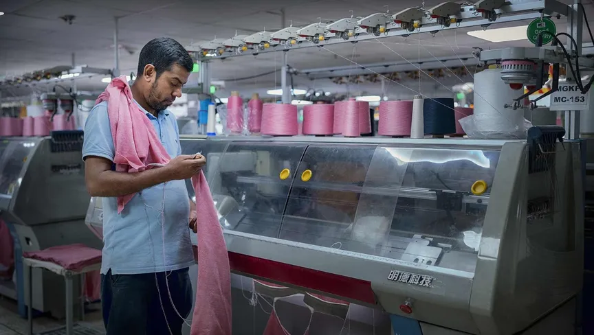 يعلو في معمل روبانا حق لصناعة الملابس أزيز المكاوي البخارية وحفيف المراوح وصليل المقصّات دون توقف، وفي تلك المنشأة الضخمة قرب داكا تدأب مئات النسوة على آلات الخياطة ليصنعن ملابس لصالح شركات مثل "إتش آند إم" و"بيبي جينز" و"برايمارك"، فيما تتابع لوحة رقمية مستوى الإنتاجية بدقة متناهية، وتحتسب نسبة العيوب بكسور الأعداد.