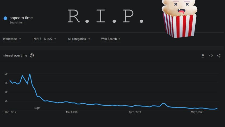 أُغلق التطبيق ذائع الصيت سابقاً، "بوبكورن تايم"Popcorn Time، و الذي جعل مشاهدة الأفلام والبرامج التلفزيونية المقرصنة بنفس سهولة استخدام "نتفلكس".