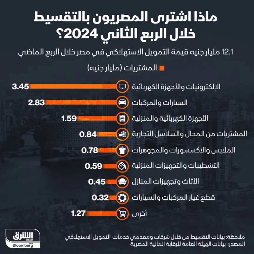 تصدرت الإلكترونيات والأجهزة الكهربائية مشتريات المصريين بالتقسيط خلال الربع الثاني من 2024، وبلغت قيمتها نحو 3.45 مليار جنيه، وفق بيانات الهيئة العامة للرقابة المالية المصرية.