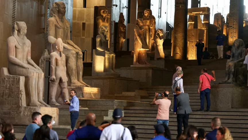بطوله البالغ 11 متراً والمنحوت من الغرانيت الأحمر قبل نحو 3200 عام، يزين تمثال الملك رمسيس الثاني، أعظم الفراعنة، القاعة الرئيسية الفسيحة في المتحف المصري الكبير، وهو مشروع يهدف إلى إنعاش قطاع السياحة الحيوي، ويعكس في الوقت ذاته المكانة العالمية المعاصرة لمصر.